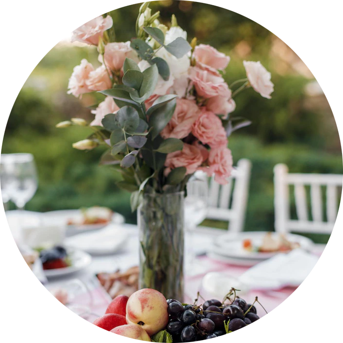 Na Twoje życzenie, za dodatkową opłatą, zajmiemy się również dekoracją stołów oraz sali.